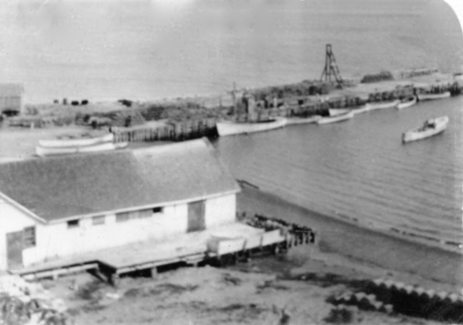 Small black and white photo of wharf. Shows fish plant. Written on top left “The Cove”.