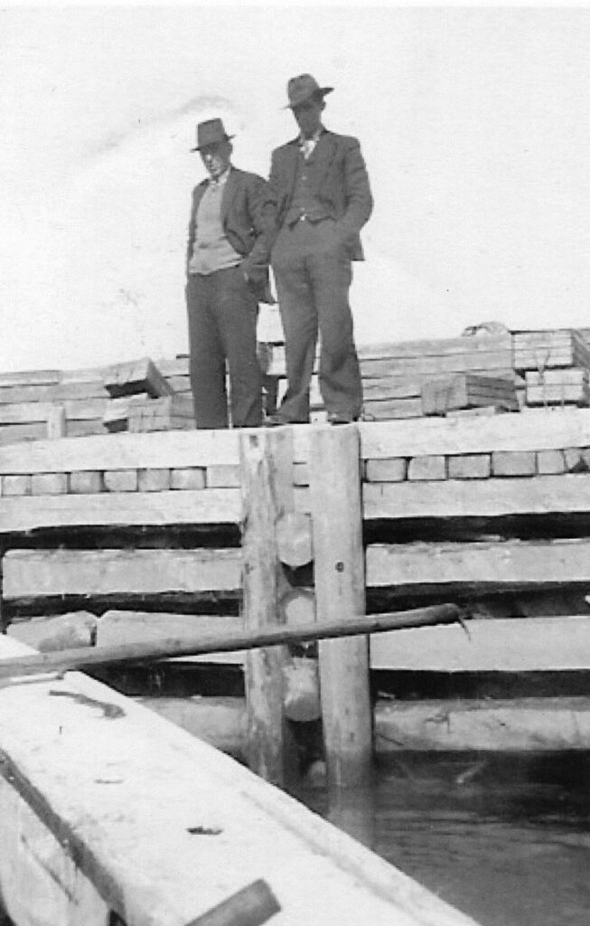 Two men standing on the wharf. James F. MacEachern and Robert Little. It is believed that Robert Little was brought up at Angus MacDouglass’s on the north side of the cape.