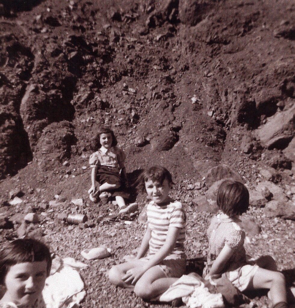 Four little girls on the rocks at the cove. MacEachern girls. Gail, Connie, Heather and not sure about the last one.