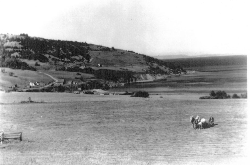 View of fields overlooking Ballantynes Cove from up around the Marsh Road.