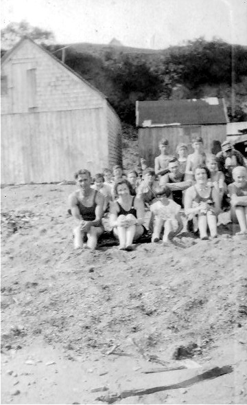 Group at Ballantynes Cove Beach. Probably the MacInnis family and friends.