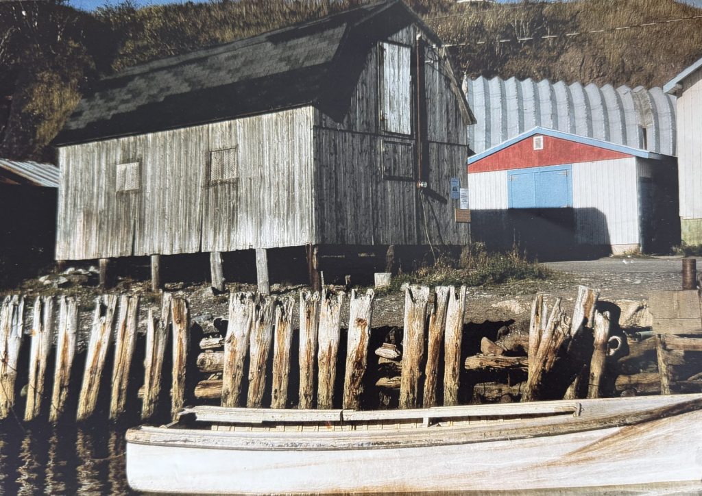 Falkenham fish shed at Ballantynes Cove with the old, wooden cribbing along the boat launch.