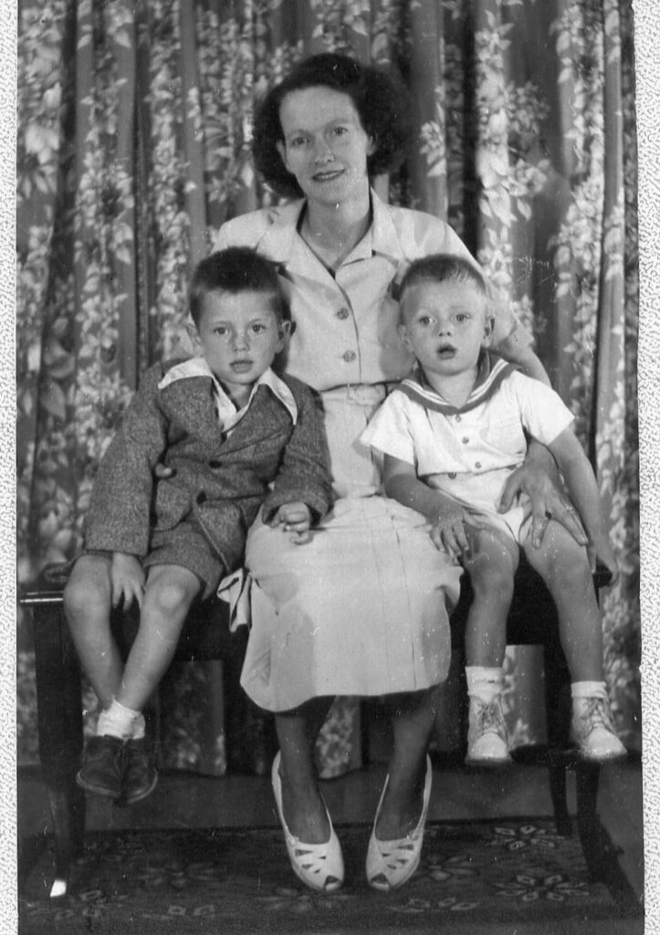 Catherine Falkenham with two of her boys – DD and Ernie.