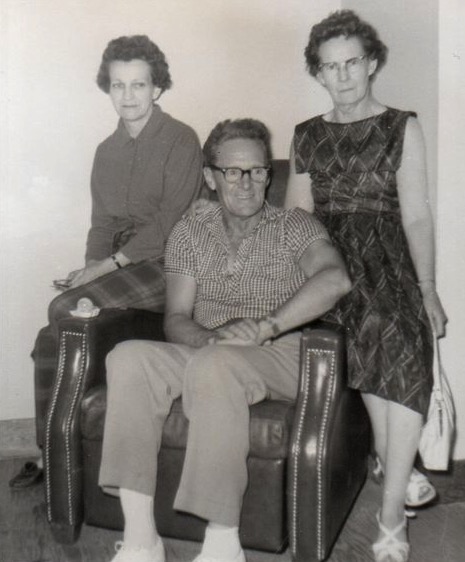 Two woman with a man in a chair. Alice, Colie and Annie MacInnis