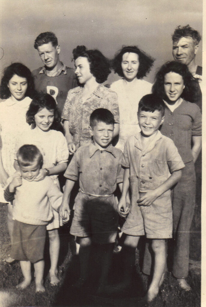MacEachern family. Back row (L to R) Ann, Kenny Gilbert (home boy), Mary, Maggie Bell and Eustace. Middle Row (L to R) Cecilia, Gerard and Jackie. Little guy is Buddy.