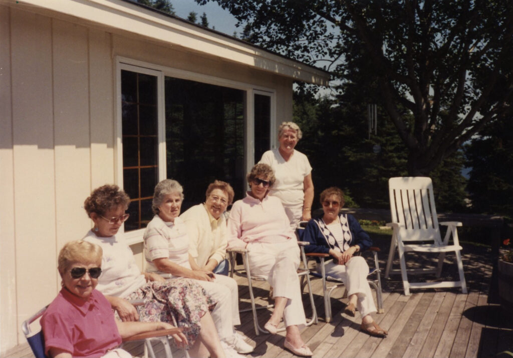 (L to R) Mary Theresa, Unknown, Eva, Mary Margaret MacEachern, Violet Haskett, Nancy Roberts, Mary (Collie’s ) MacDonald.