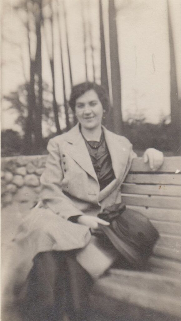Woman sitting on a bench. Annie Agnes (MacInnis) MacGilivray. Taken around 1917-1920