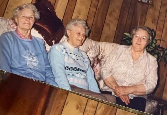 Two women from left to right are twins Tina and Catherine MacDonald. Third woman is sister Sadie MacDonald