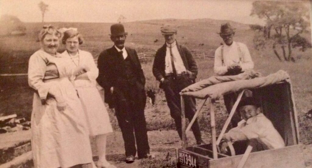 Left to Right – Mary (Hughie Sandy) MacDonald, Josephine MacDonald, Israel Robert, Davie MacDonald, Hughie Sandy MacDonald and Charlie Willy MacDonald in the cart. Charlie, Davie and Josephine were the children of Mary and Hughie Sandy.