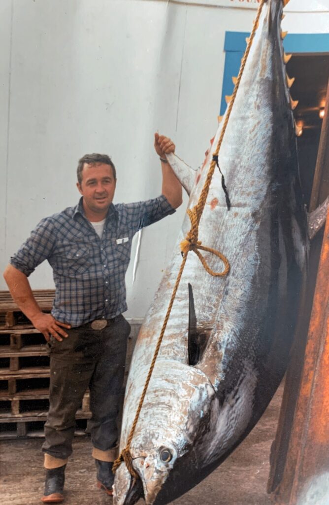Andrew Brown with a giant tuna he caught. Photo taken at Ballantyne Cove wharf.