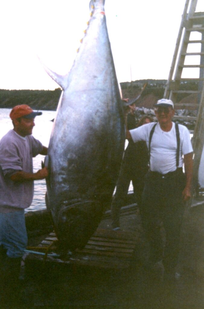 Himmie Ballantyne and unknown male with a tuna he caught.