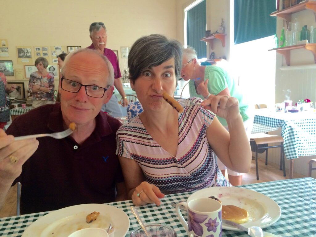 Color photo of Anna and Pat MacMillan at a pancake breakfast in 2016