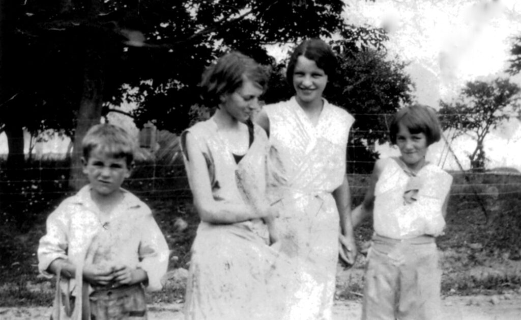 Group of four youths. Young boy is Unknown. Helen Wallace, Kathleen Thompson and Eleanor MacIntyre