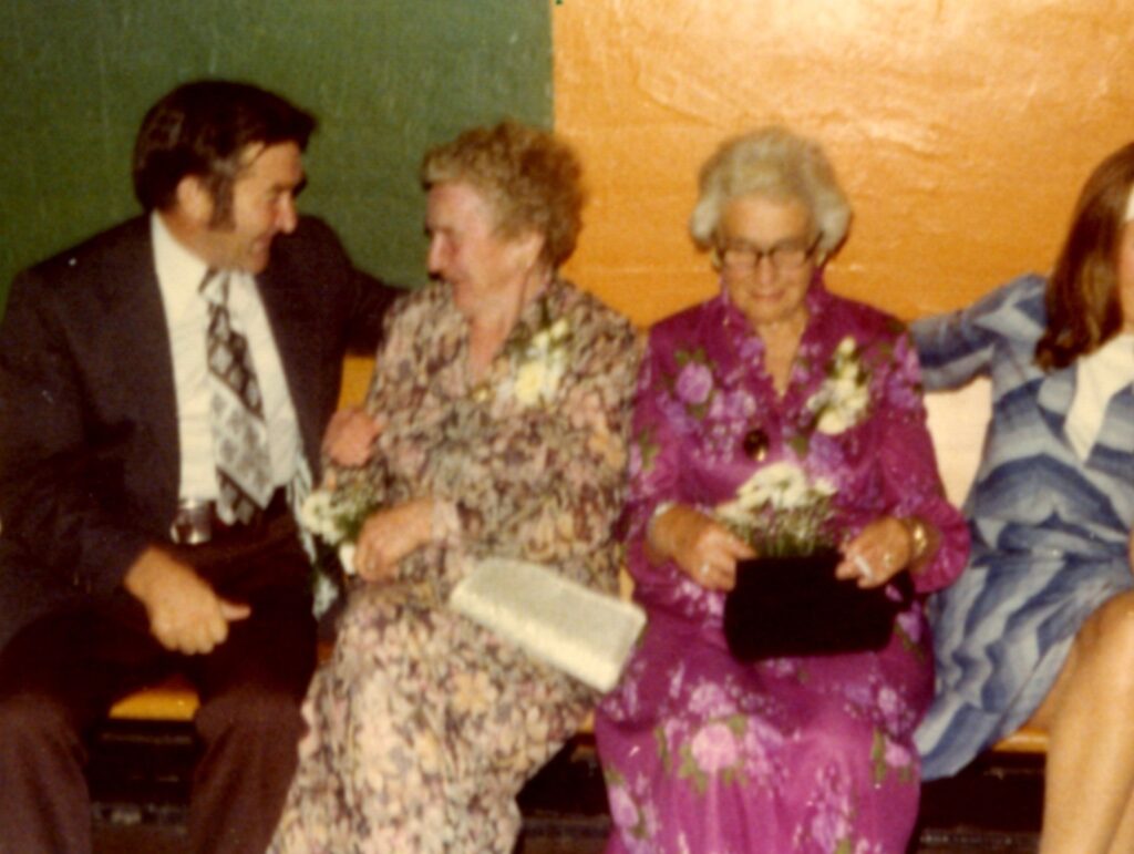 A man with two older women. Women are Bessie Ballantyne and Beth Hopson. Man is U/K.