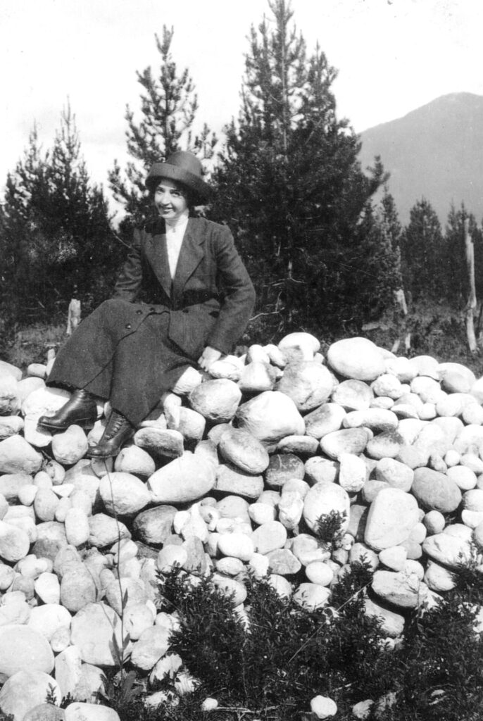 Woman sitting on a pile of rocks in Banff Alberta. Margaret MacEachern/Eccles