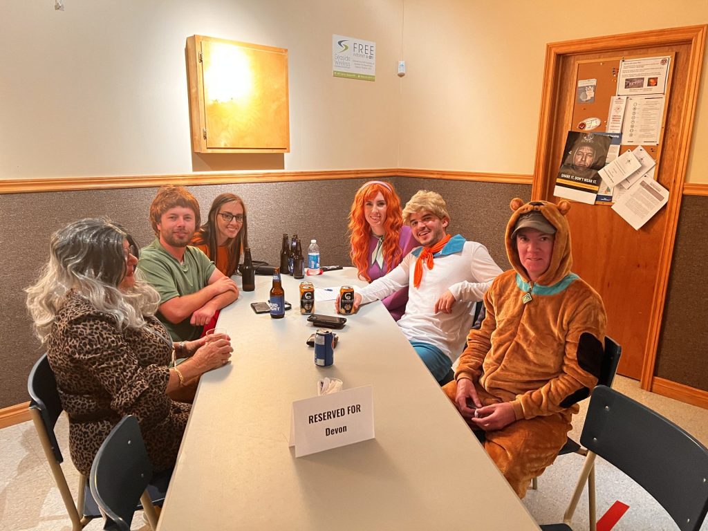 2023 Halloween Trivia Night: Scooby Doo group plus Grandma. Grandma is Carolann Falkenham, Fred is Devyn Gillis and Scooby is David Falkenham