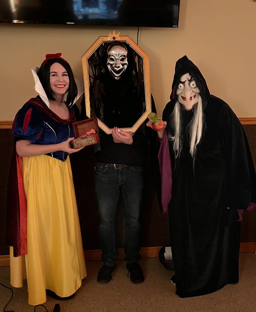 2024 Halloween Trivia Night – (L to R) Snow White is Courtney MacNeil, Mirror Mirror is Steven Scannell and The Witch is Sue Smith
