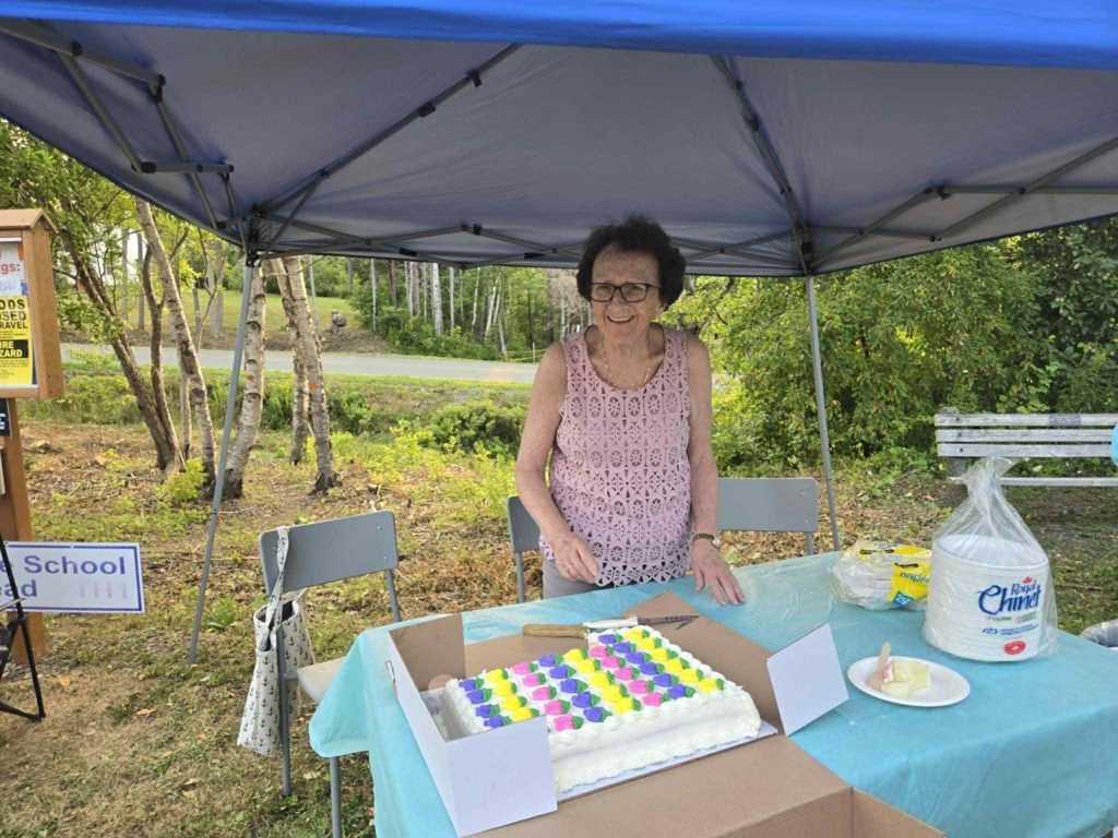 100th Birthday Celebration of School – Aug 9, 2025. Gail MacEachern cutting the cake