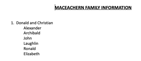 Information on the Donald and Christian MacEachern family and their descendants. Download .pdf file to read entire document.