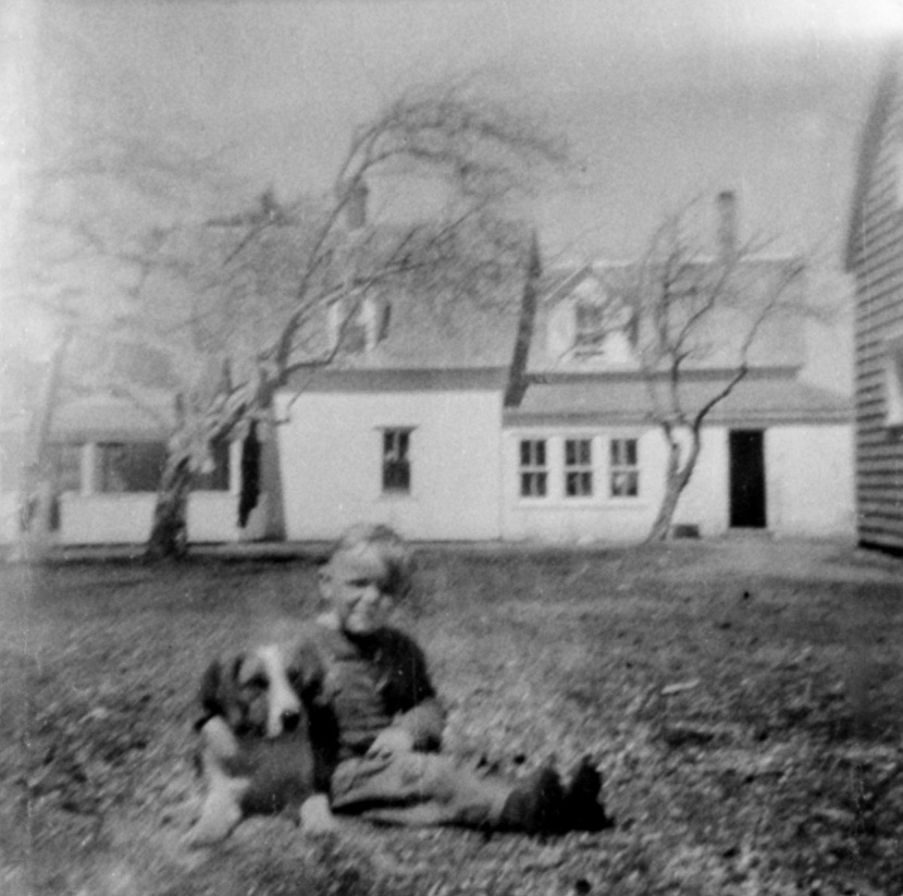 Photo of Roddy Adams with a puppy. Taken in 1957. Puppies name was Butch. Photo taken early in spring.