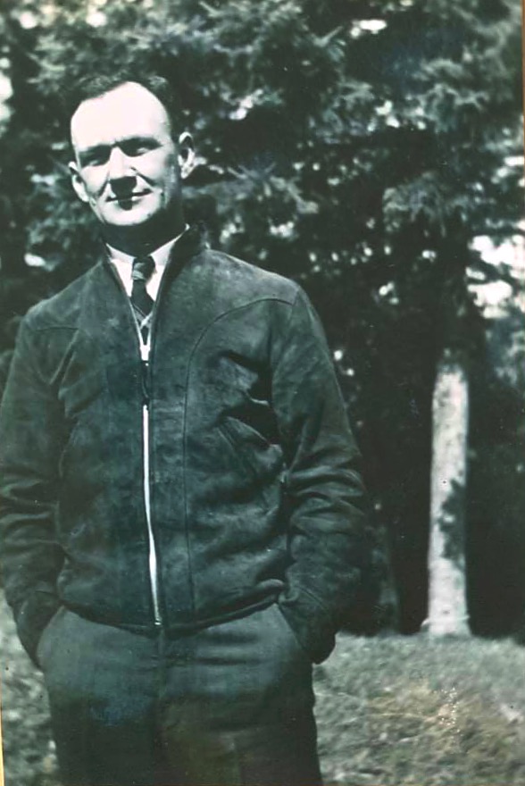 Man standing in front of some trees. Peter MacInnis. 1932-1933