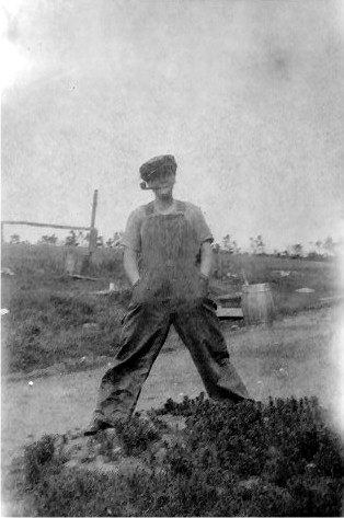 Patricia Dawe/MacInnis wearing coveralls with a pipe.