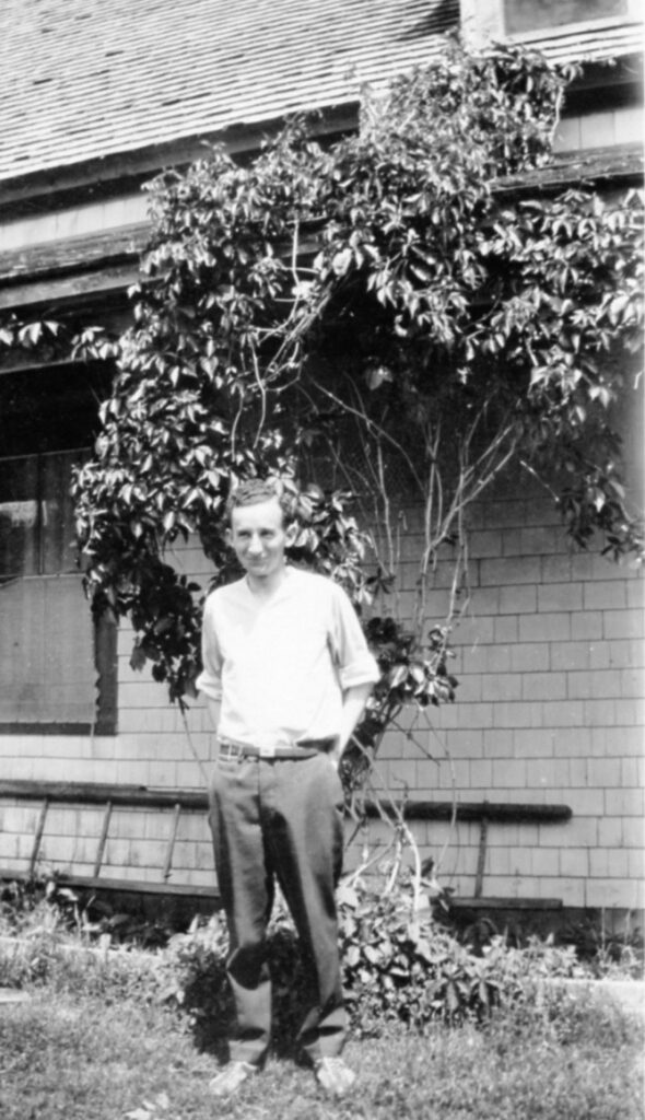 Man standing in front of the Adams farmhouse. July 1928. “Wee Donnie”. Back says “Mack”.