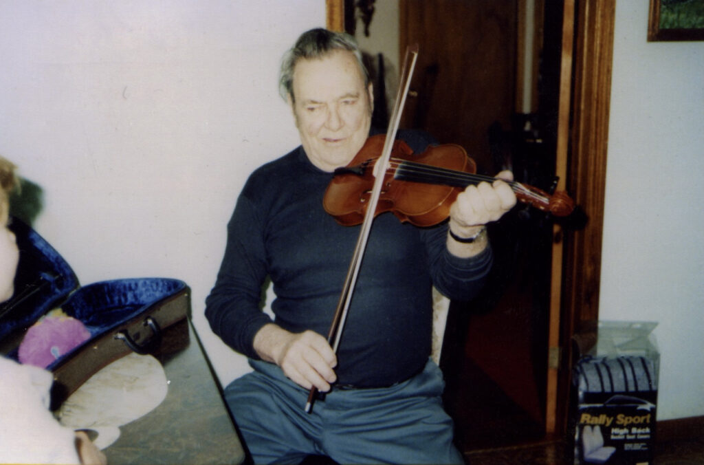 December 1987 – Mark MacInnis playing the fiddle. He had lost his old fiddle when the family home burned down after being struck by lightening. The family bought him another one and that is what he is playing here.