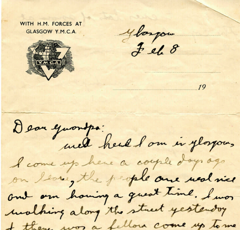 Letter from Billy Ballantyne to “Grandpa” written on February 8th. Ballantyne served in WWII. Download file to see entire letter.