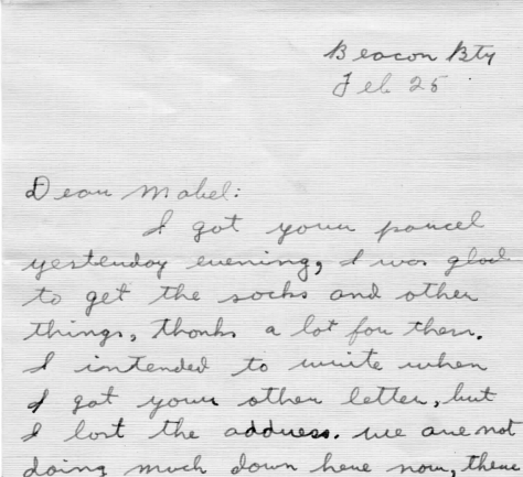 Letter dated Feb 25th, from Billy Ballantyne to Mabel MacPhie. Download .pdf file to read entire letter.