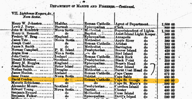 From the Government of Canada Session Papers from 1882 – the pay of William Charles Condon per year.