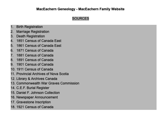 Some genealogical information associated to the Allan MacEachern family. Download file to see entire document.