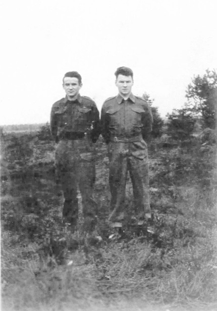 Two military men standing in field. Billy Ballantyne is on the left. Unsure of man on right.