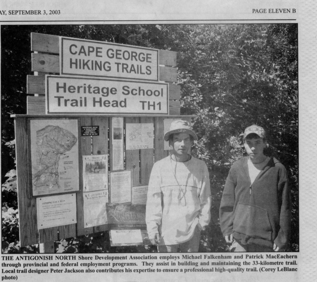 Newspaper 3 sep 2003. North Shore Development Association . Hiking Trail sign.