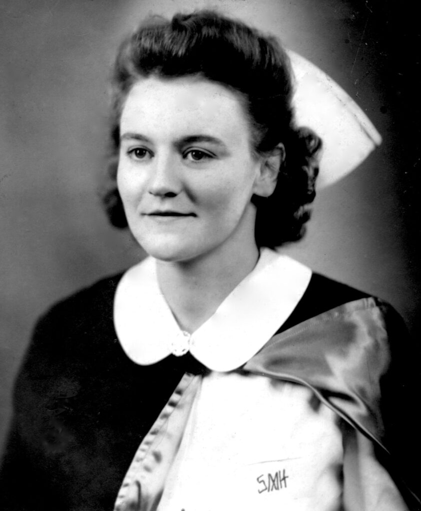 Graduation portrait of Eleanor Ballantyne in her nursing uniform from St. Martha’s Hospital.
