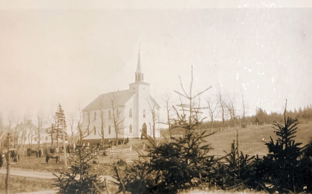Georgeville Church – unknown the year, but people were still coming to church in horse and buggy.