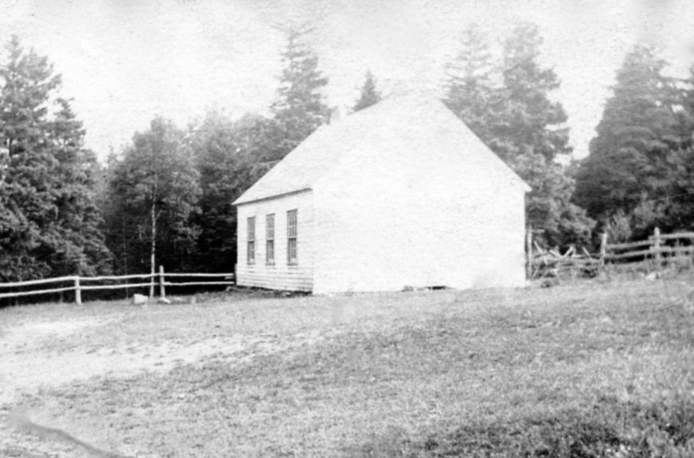 Small photo of old school house. Back of photo says “The little red school house.” Taken around 1912. South Side Cape George.