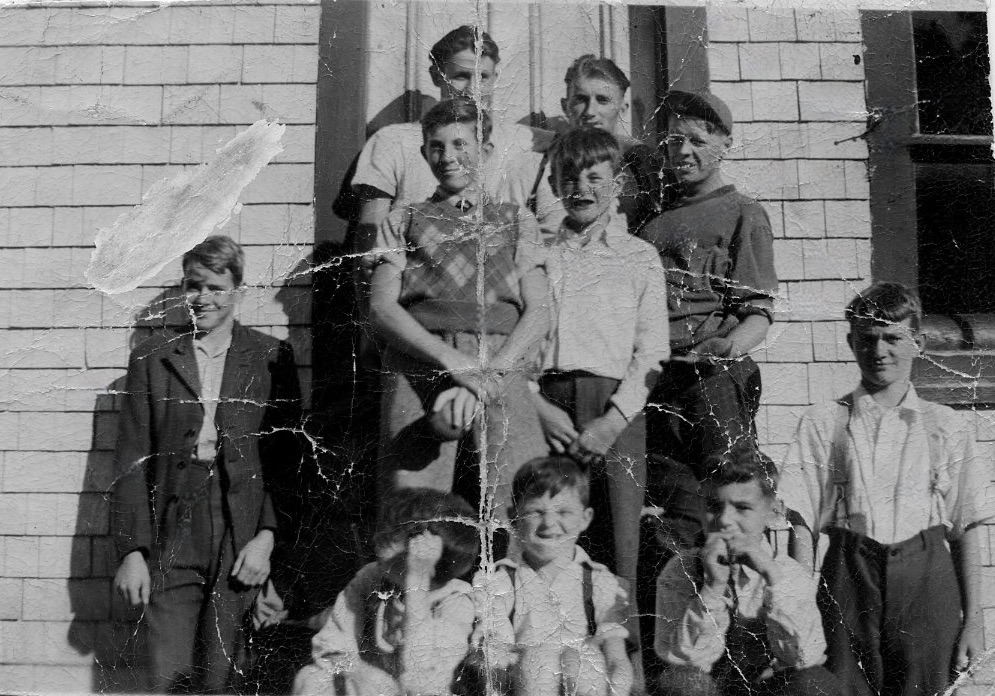 Cape George School photo – Back Row (L to R) Rankin Roberts, Gussie MacDonald, Kenny Gilbert. Middle Row (L to R) Himmie Ballantyne, Ray MacDonald, Allan Roberts, Harold Jimmy MacPhie. Rest unknown.